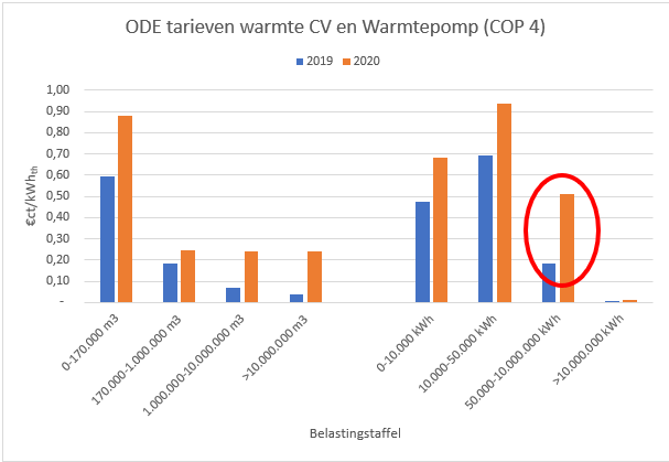 Bij kleinverbruikers wordt met de nieuwe energiebelastingtarieven voor 2020 een stimulans gegeven aan de toepassing warmtepompen. Bij de industrie wordt de toepassing van warmtepompen juist belemmerd. Dit blijkt uit het wetsvoorstel met fiscale maatregelen uit het Klimaatakkoord, waarin inzicht wordt gegeven in de nieuwe ODE-tarieven. Met name de derde schijf van elektriciteit gaat fors omhoog waardoor voor de meeste industriële bedrijven de elektriciteitskosten toe gaan nemen. Gebruikers die meer dan 10 miljoen kWh per jaar gebruiken, gaan per jaar ruim €130.000 extra betalen.