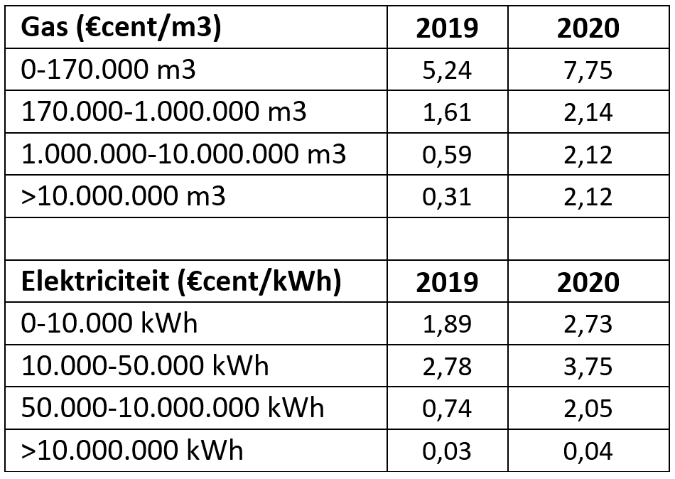 Voor elektriciteit wordt met name de derde schijf zwaarder belast. De stijging van 1,31 €cent/kWh betekent een stijging van het totale marginale elektricititeitstarief van maar liefst 18% voor alle bedrijven die tussen de 50.000 en 10 miljoen kWh per jaar verbruiken. Dit betekent dat bedrijven die 10 miljoen kWh per jaar verbruiken straks €131.000 extra moeten gaan betalen!